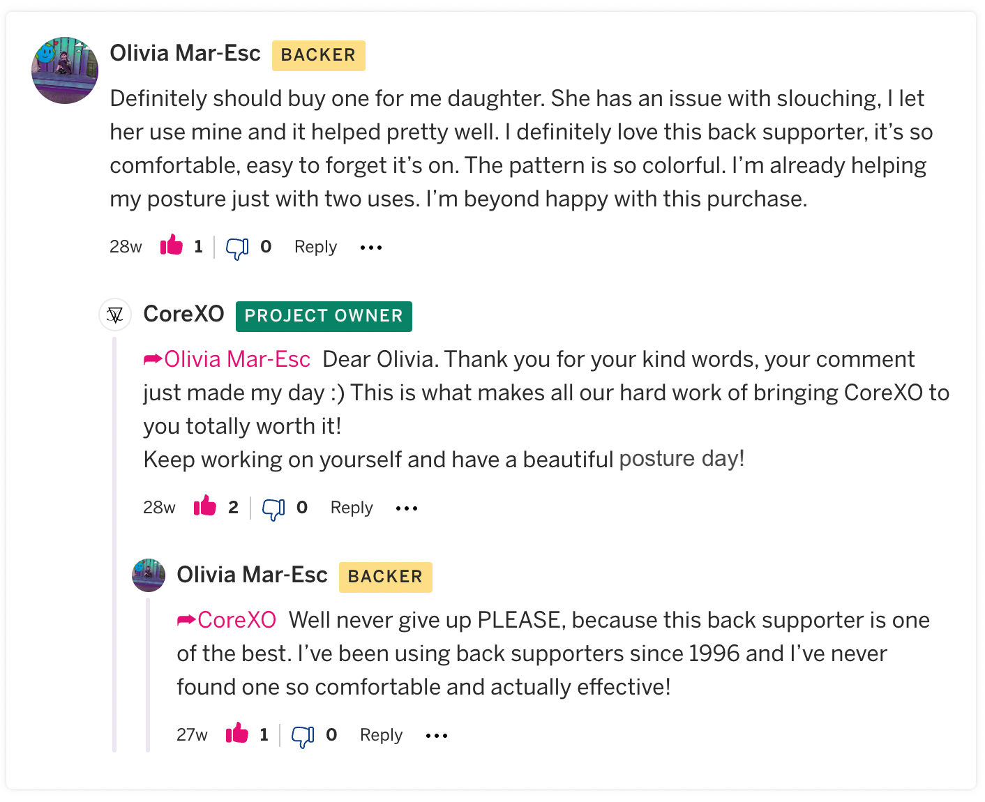 With a relentless focus on innovation and customer satisfaction, we are determined to redefine the standards of back relief. Join us on this transformative journey as we empower individuals to conquer back pain, one satisfied customer at a time. Experience the CoreXO difference and discover the joy of a pain-free, supported back.