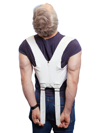 CoreXO’s shoulder straps are positioned strategically to pull the shoulders and neck into alignment. They are also designed to adjust CoreXO to people of all heights.